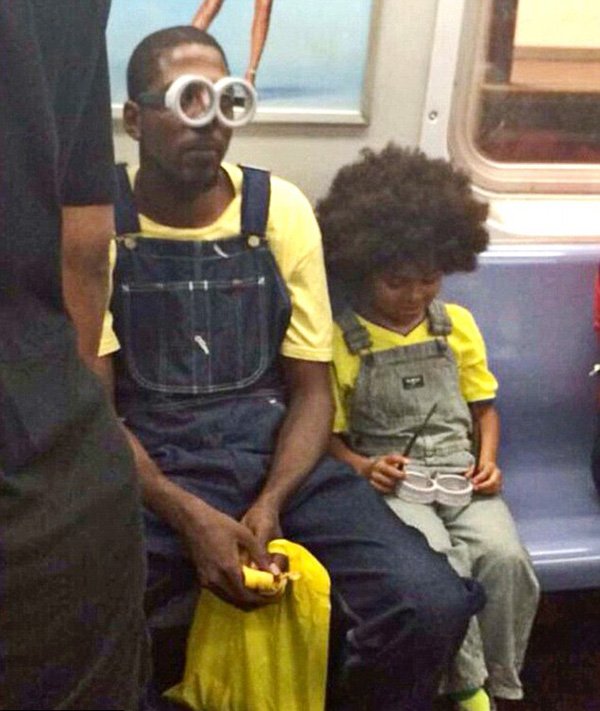 New Yorkban hatalmas szenzációként robbant be ez a kép, amin egy apa a metrón a Minyonok című film bemutatójára viszi a fiát. A férfi nem teketóriázott, ő is beöltözött egy minyonnak! Ti megcsinálnátok ugyanezt?